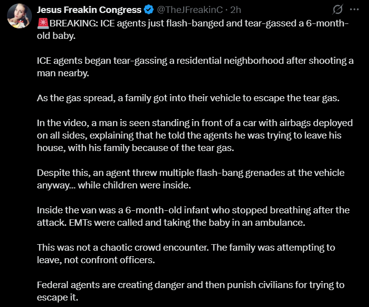 >>526053856I'm too old and cynical to believe that the FBI is capable of 5D chess but there should be some kino skull cracking in the near future, regardless. I also think this development with the ICE agent being attacked right after Walz encouraged it combined with the rioting means Minnesota is about to get its shit pushed in. Hard to believe that Trump won't send in the national guard or something after this one.