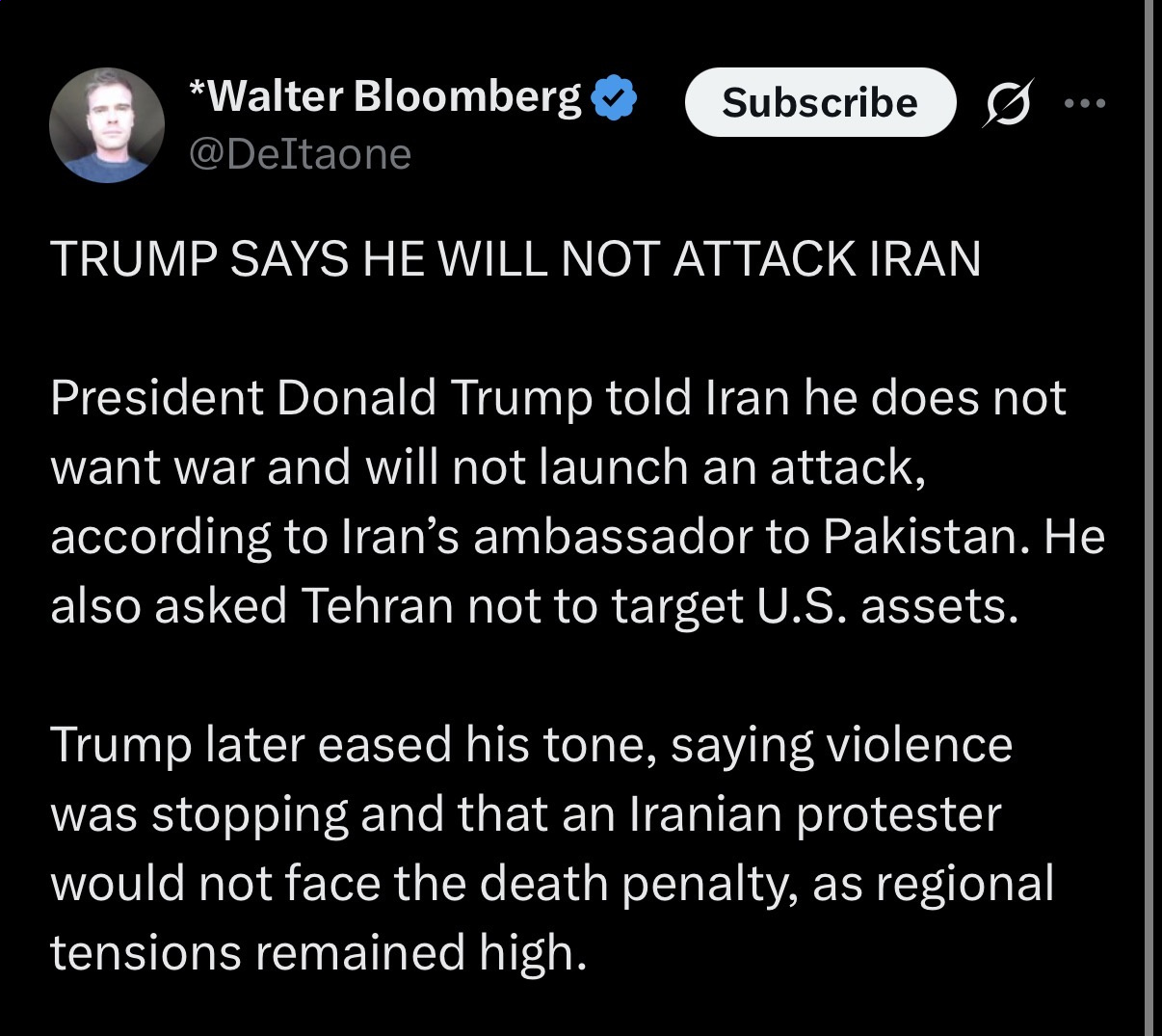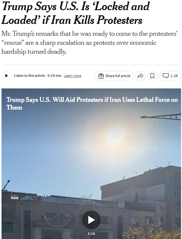 >>526070569https://www.theguardian.com/world/live/2026/jan/14/iran-protests-live-updates-trump-us-action-death-toll-protester-executions-erfan-soltani#:~:text=20.06%20EST-,Iran's%20stopped%20killing%20protesters%2C%20Trump%20says%20he%20has%20been%20told,orchestrating%20violence%2C%20without%20providing%20evidence.That's not it what says here
