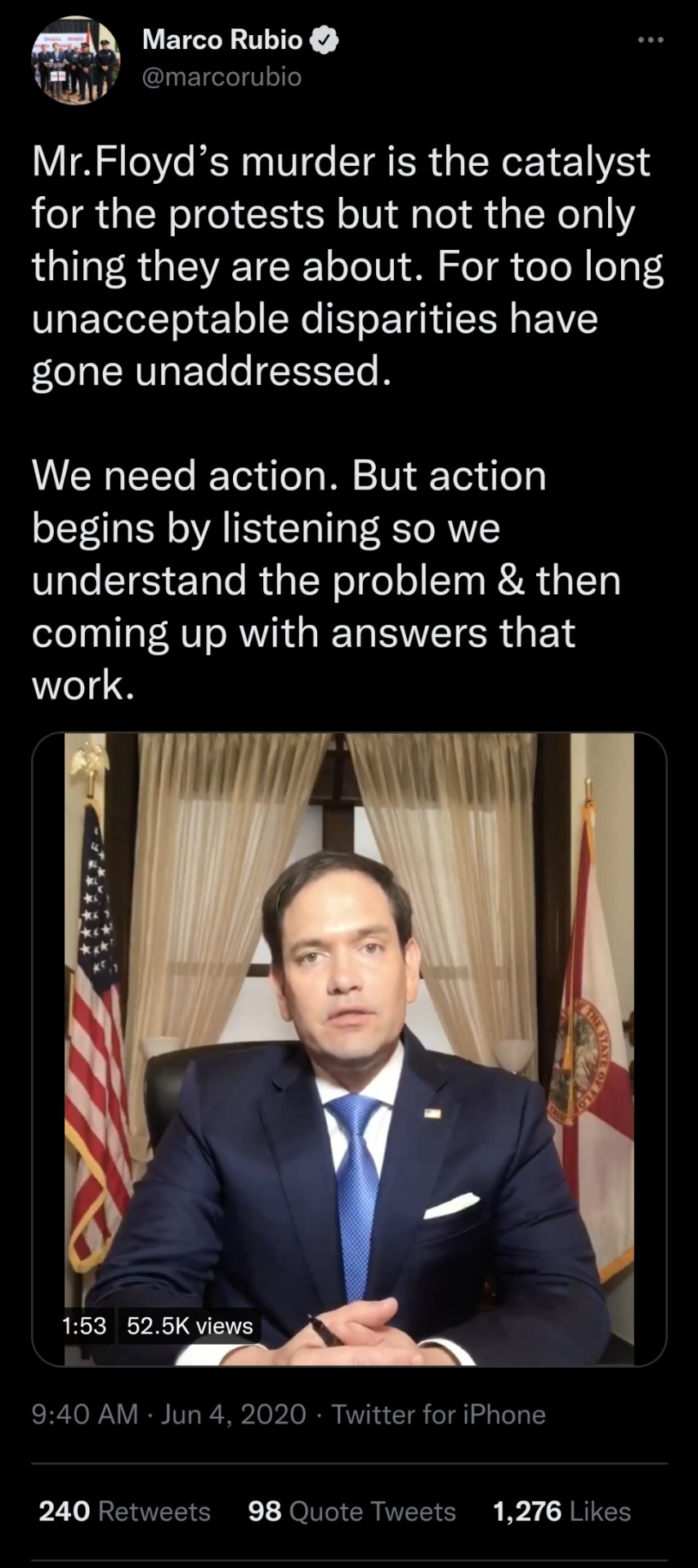 Rubio is the only one with the "I am a serious guy" vibe in the whole admin. I dont know to what degree this is fake and manufactured but that's literally what it is.