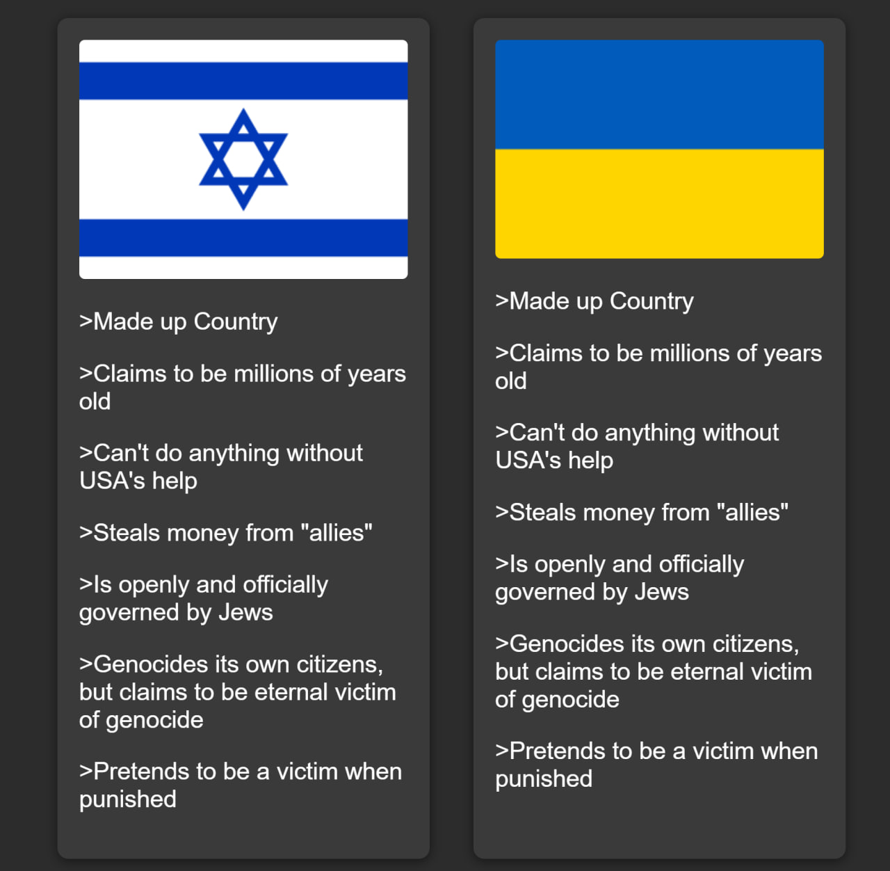 >>526091578Why is US so pro Jews>Jewish cospiracy If so then the jews are fucking 300IQ demonspawns that somehow completly took control of the strongest country in the world making US their personal bitch.