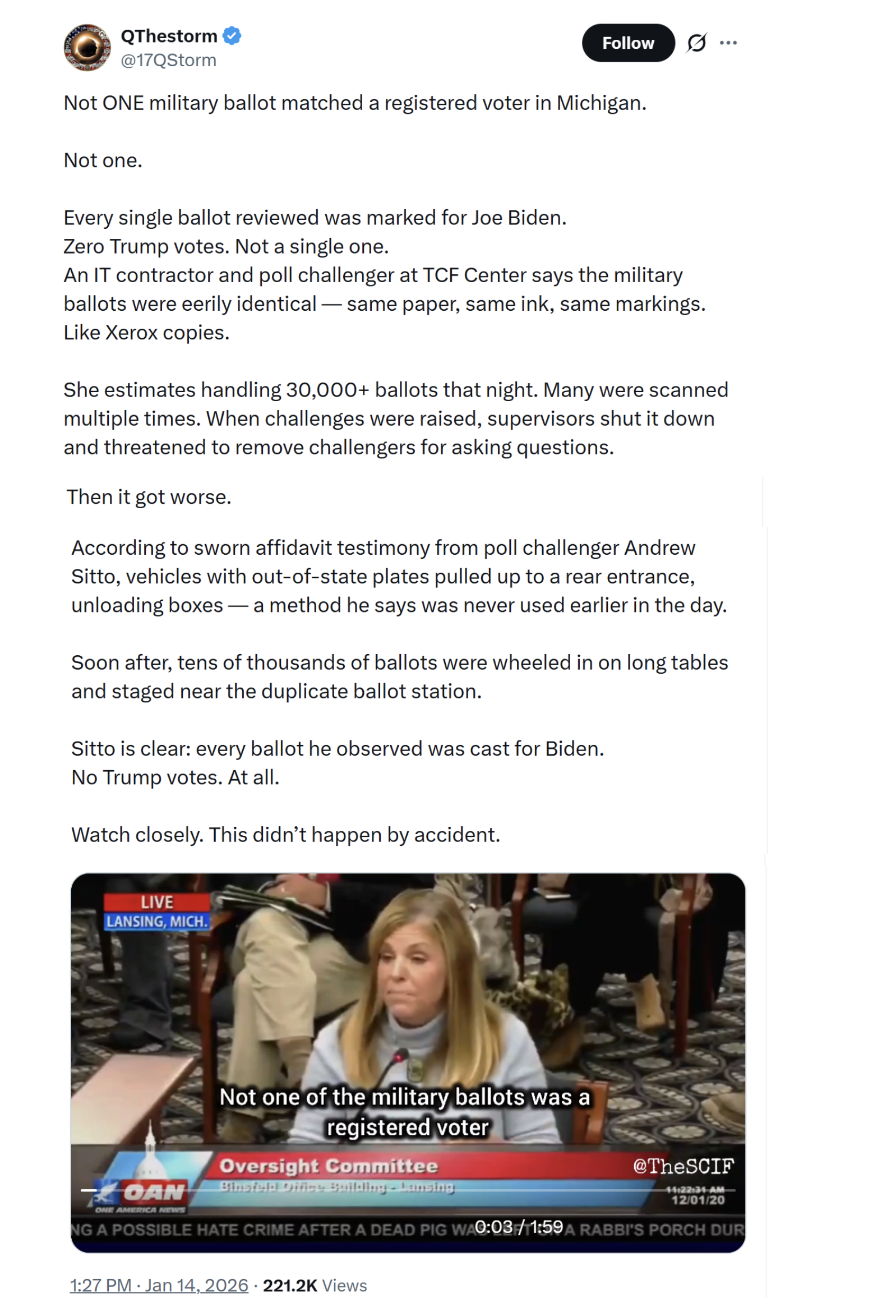 It is puzzling they are still resisting. It is clear to me there has been some tectonic shift behind the scenes, which occurred long ago, and which, unless you understood it perfectly, is irreversible. It might even be irreversible if you understood it perfectly. Either way I think it unlikely they have any understanding of it, meaning the migrants are going back, and even keeping them here will serve little purpose as the voting will be fixed so they cannot affect it. So why fight to keep the migrants here? Are they planning more direct action in the summer, and need them here for that?Regardless, it cannot go on like this forever. Candace talking about the child spies in the schools is huge. That is a secret even bigger than the surveillance, and the first little piece of it is out there now, and people are starting to understand. One of the most respected medical doctors in the country has come out and said the government threatened him, and told him he cannot treat civilians who have Havana Syndrome anymore. The subtext is clear. A government agency is torturing American citizens with Havana Syndrome, and it is using threats to force the medical industry to refuse to treat them, so its torture will be more effective.None of this can go on forever. Not in a country steeped in the arts of violence, and as heavily armed as we are. These are all signs indicating the trajectory, which will lead to a point where it is all coming out, and it will all be destroyed. We Will Win.https://x.com/AFpost/status/2011705280825082335