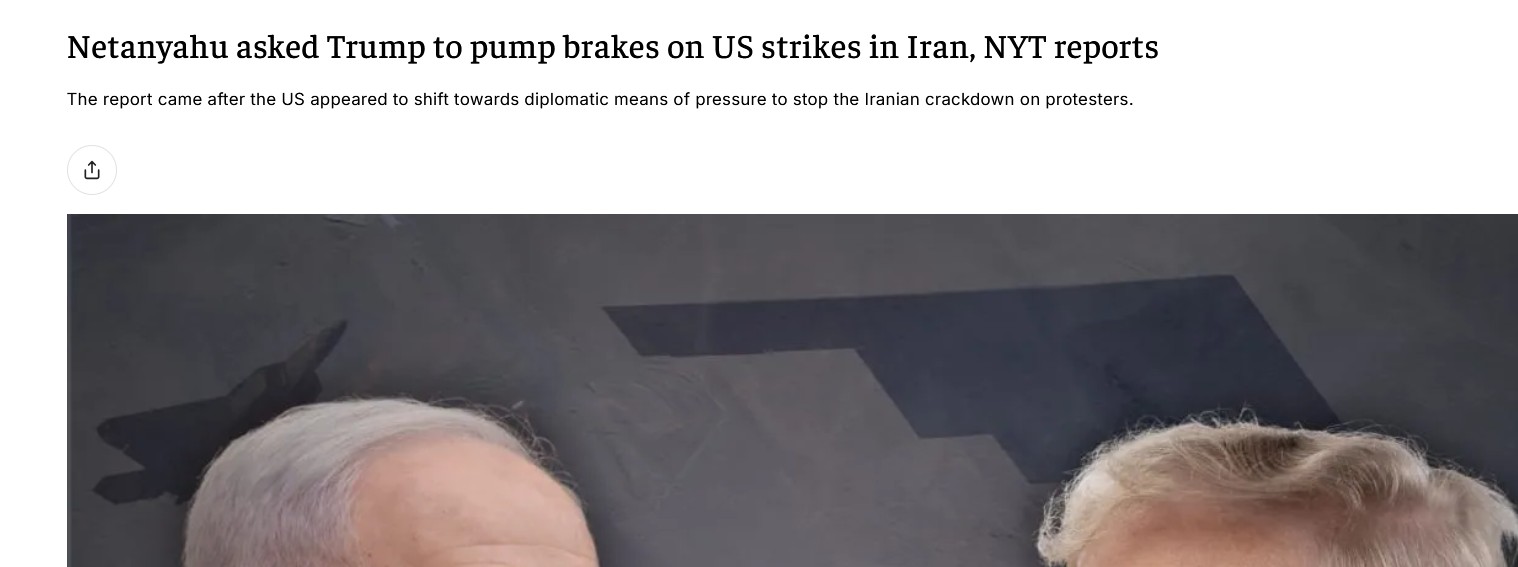 TACO once again. Trump's attack on Venezuela didn't even result in regime change, just the arrest of the guy at the top. Now, the Pentagon is telling him an attack has zero chance of toppling the Iran regime.