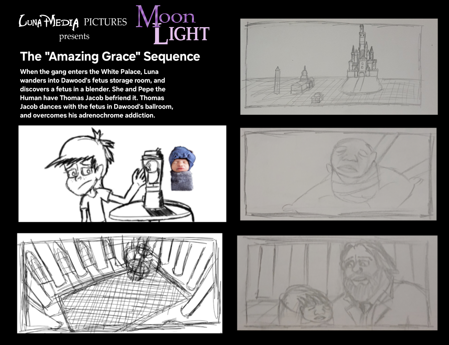 Here is a storyboard of Thomas Jacob dancing with a fetus.
