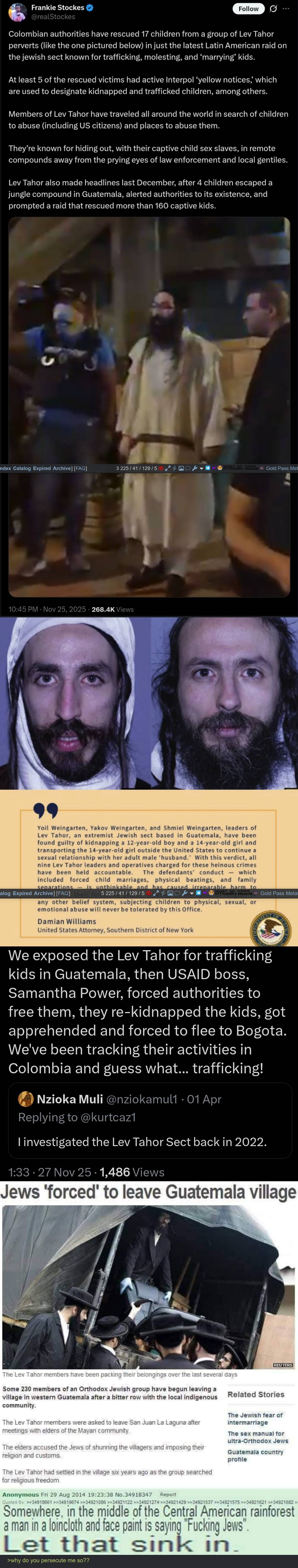 >>526113212Do you have meds for being a guy defending an international child organ and sex trafficking ring in out country by a foreign religous sect and violent government that created the Covid Vax? Because if you don't you may want to smoke a little weed or drink some grape wine and do some self reflection.>>526113589>christian>championing sex out of marriageHe's championing a foreign cult government's child trafficking ring and organ harvesting ring in the Americas, fuck you and die.