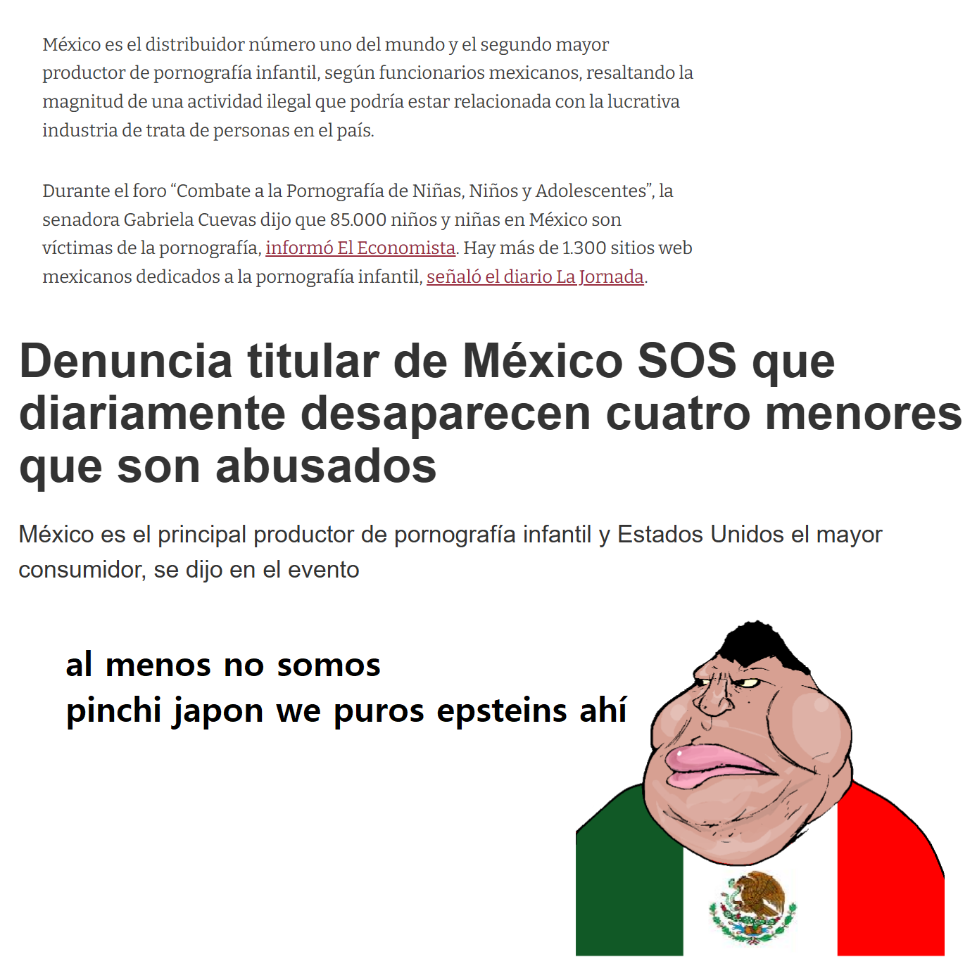 >>526126975All women would rather live in Japan over Mexico.Your country is a rape and murder filled hellhole where women are raped and decapitated for sport.