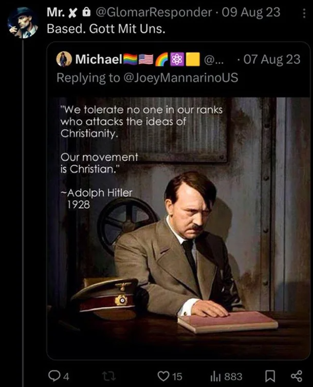 Uhh Hitler wasn't a christcuck. What even is this quote?