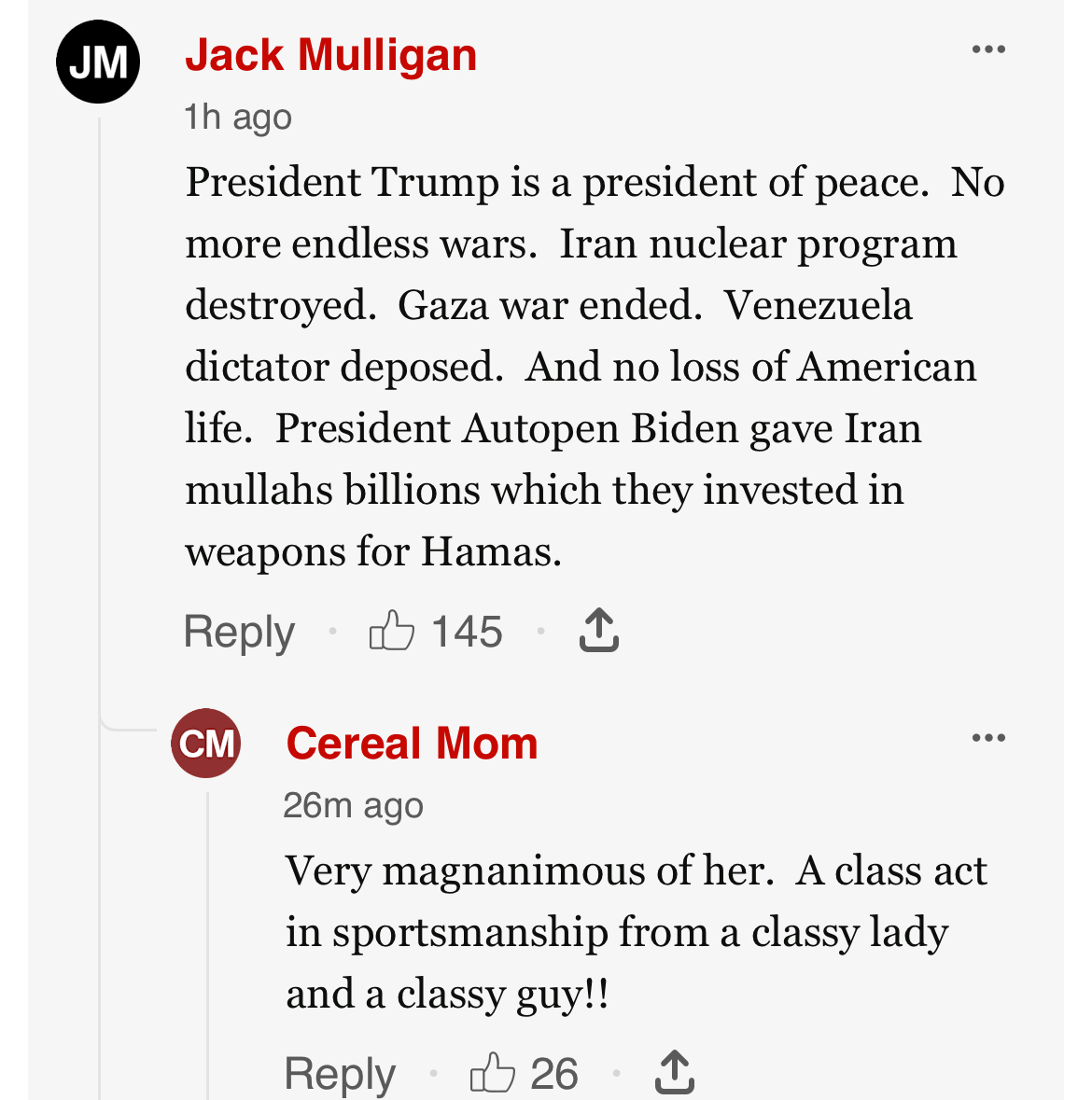 >>526155169>promotes infighting and civil unrest in the country >encouraged Israel to break a ceasefire and bomb Gaza>invaded Greenland>invaded Venezuela >bombed Iran>drone strike on innocent civilians >hE DeSeRvEd iT!!111one11!!!!please never have children