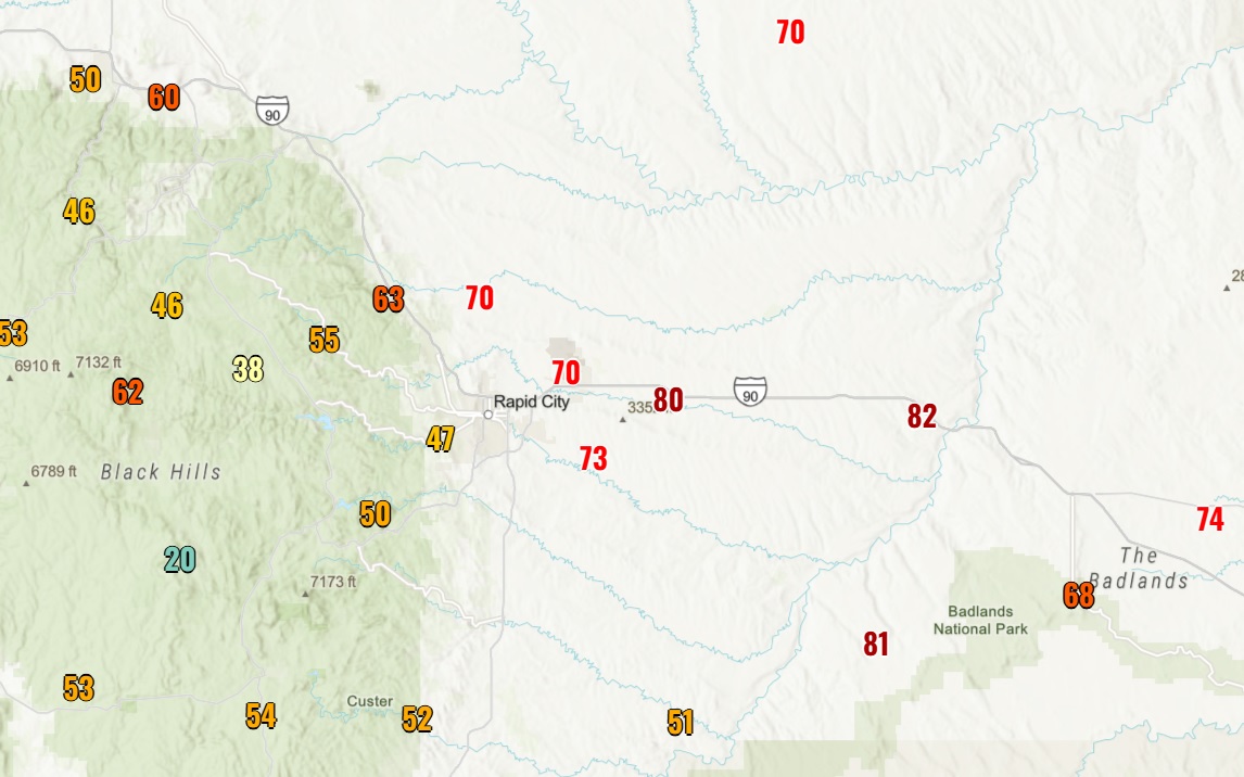 Max wind gusts. Not quite as bad if you are in the Black Hills. The plains to the east are getting blasted.