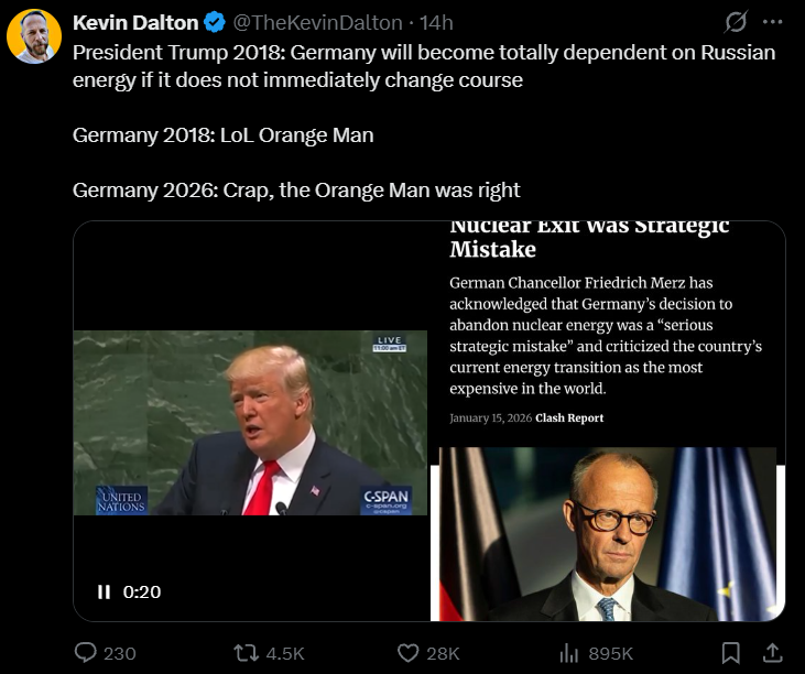 >>526168467I wish it was 2015 again.>>526168355They're as 'sane' as ever, they just hate the US. Reminder this free trade block was already in the works, as was the cooperation with china, long before greenland was in the news. They were already and always backstabbing us, then playing the victim when called onit.