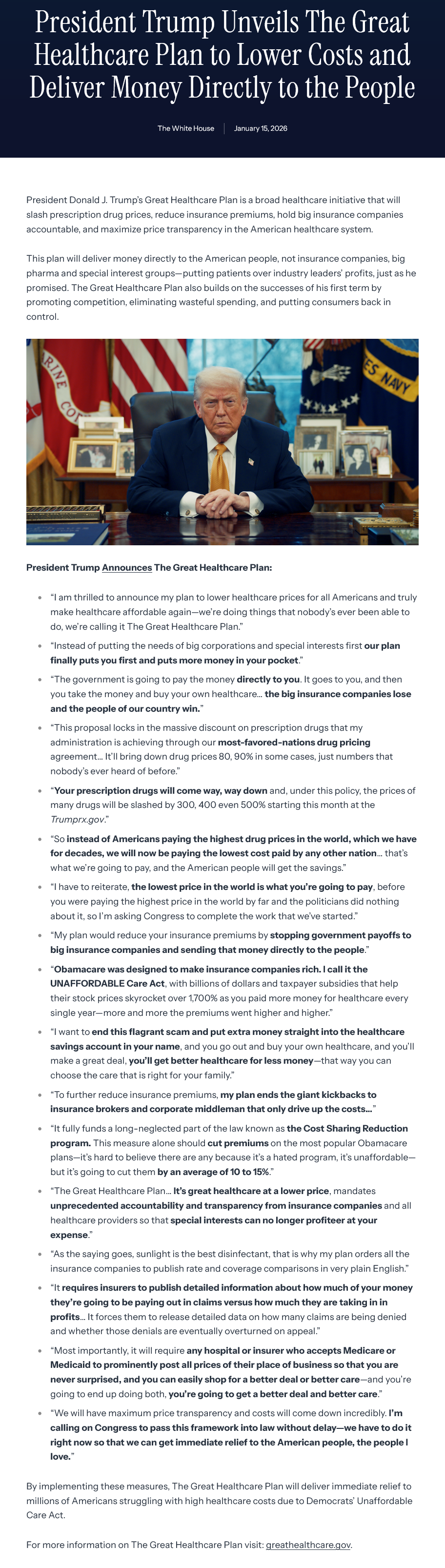 https://www.whitehouse.gov/articles/2026/01/president-trump-unveils-the-great-healthcare-plan-to-lower-costs-and-deliver-money-directly-to-the-people/