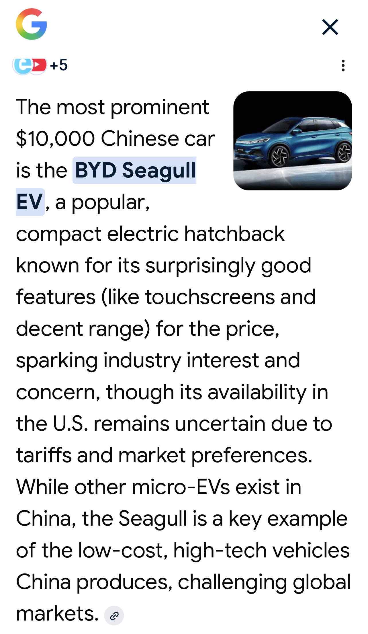 >>526172097>>526172224if that one sells for around $11000 CAD in china then the price for a base model here will be $13,000=$14,000 after taxes/tariffsif you just need a cuckbox to go around town it's a good deal, by comparison the absolute cheapest new car you can possibly buy right now is a Nissan Versa at $20k