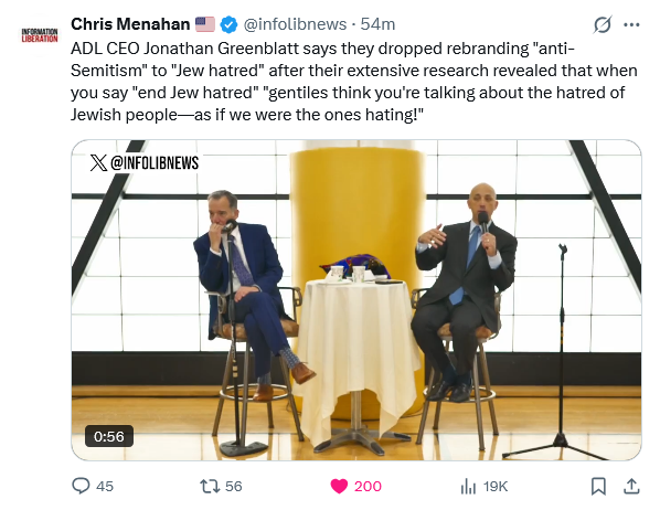 >ADL leader Jonathan Greenblatt says Americans who criticize Jews and Israel will be monitored by the FBI.>“We will monitor social media and check your bank accounts.”https://xcancel.com/themarketswork/status/2011947546801737924#mhttps://xcancel.com/RedPillMediaX/status/2011899172023386325#m
