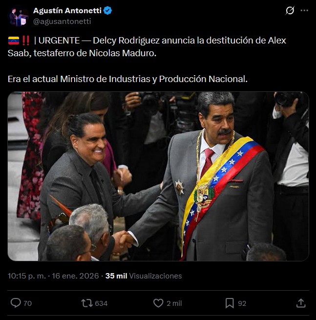 >>526200655delcy dismissing saab, maduro's supposed frontman and ministry of industry and national production