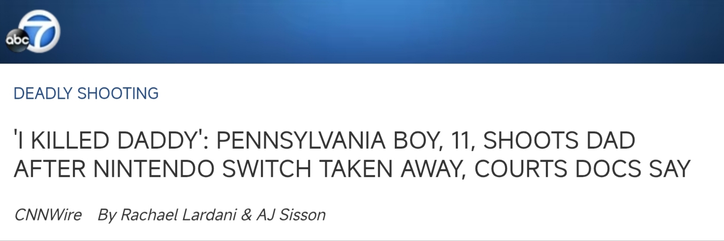 >person develops a dependency on something>attacks you when you try to abruptly take it away from themA tale as old as time. Parents in particular need to learn to manage their kids properly so they won't develop a strong enough addiction to video games to kill someone over it. Also stop leaving guns out for those kids to easily get to