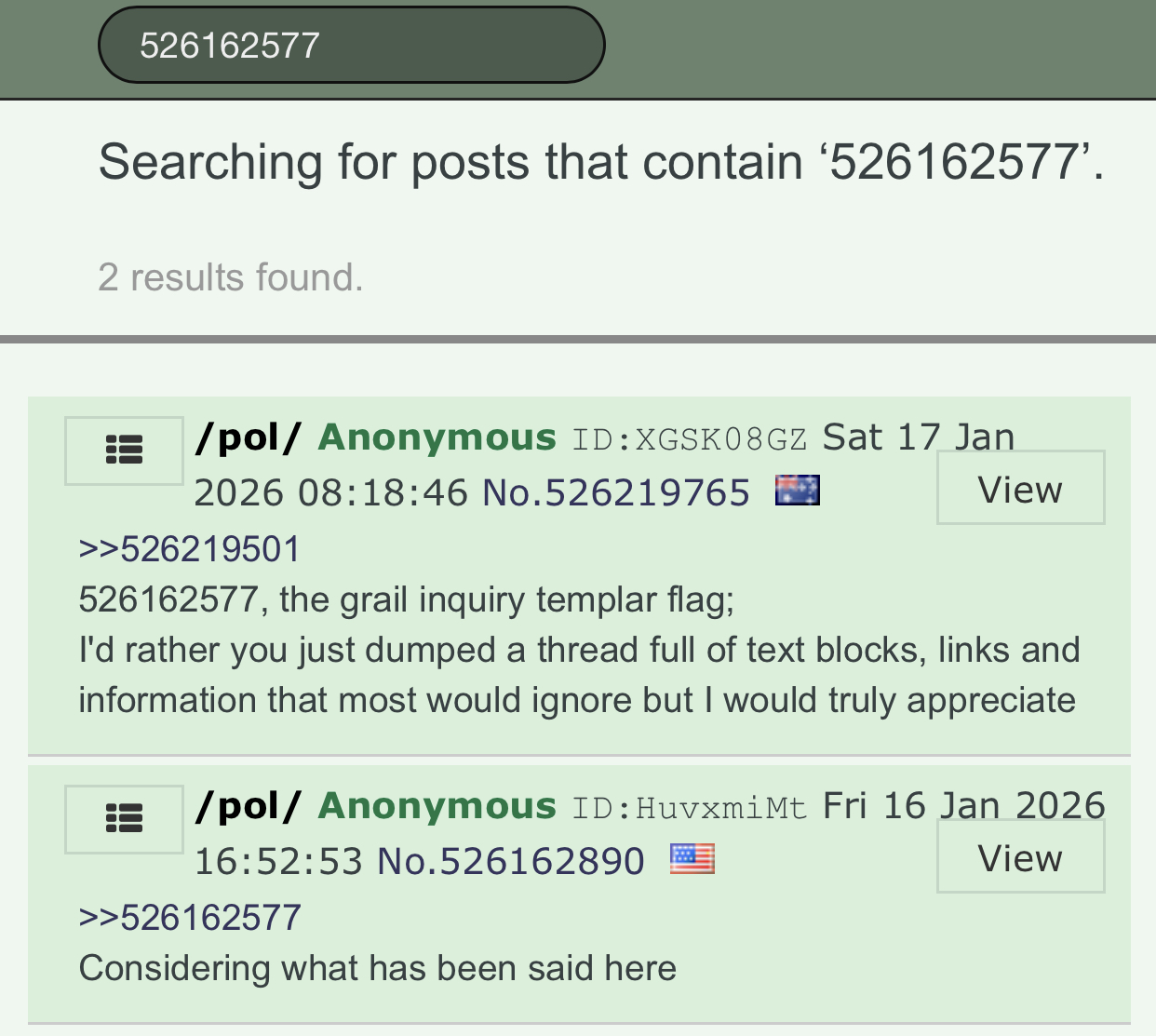 >>526219501526162577, the grail inquiry templar flag;I'd rather you just dumped a thread full of text blocks, links and information that most would ignore but I would truly appreciate
