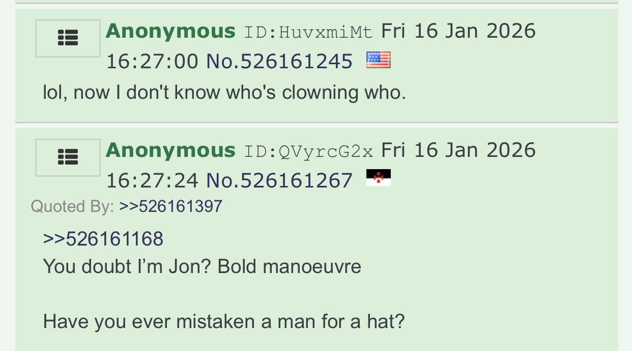 >>526215805>>526216217I'm not going to tell youAnd neither will IYou're Green
