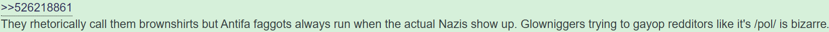 >>526218861> thinks nazis are in brownshirtsonly nazis left are in their mom's basements posting frogs and animegirls while your mass hysteria properly positions Hitler as the sensible alternative.