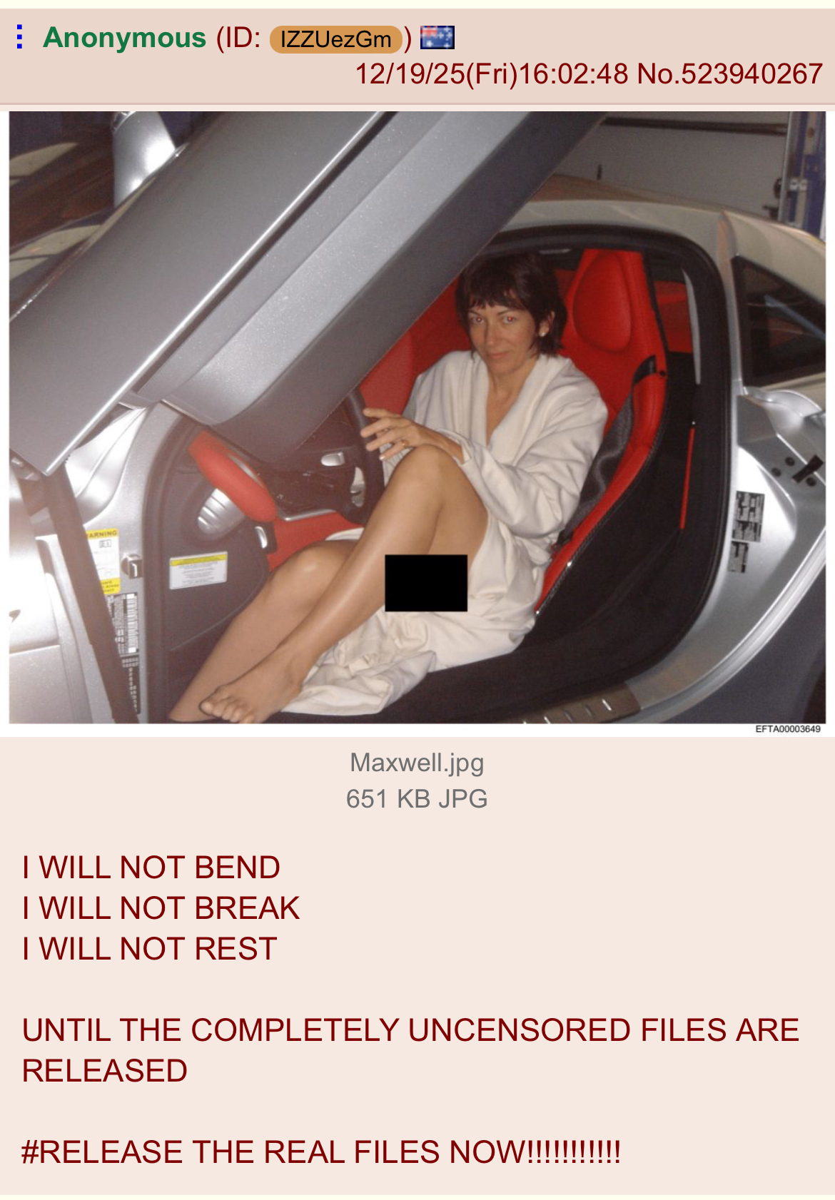 >>526233363Ivana Trump and Ghislaine Maxwell used to trawl trailer parks for lolis.>>526232793Based. Many Epstein victims describe forced medical procedures where they were drugged and woke up on surgical tables with incisions indicating their eggs had been harvested. This case is far more fucked up than ppl think.