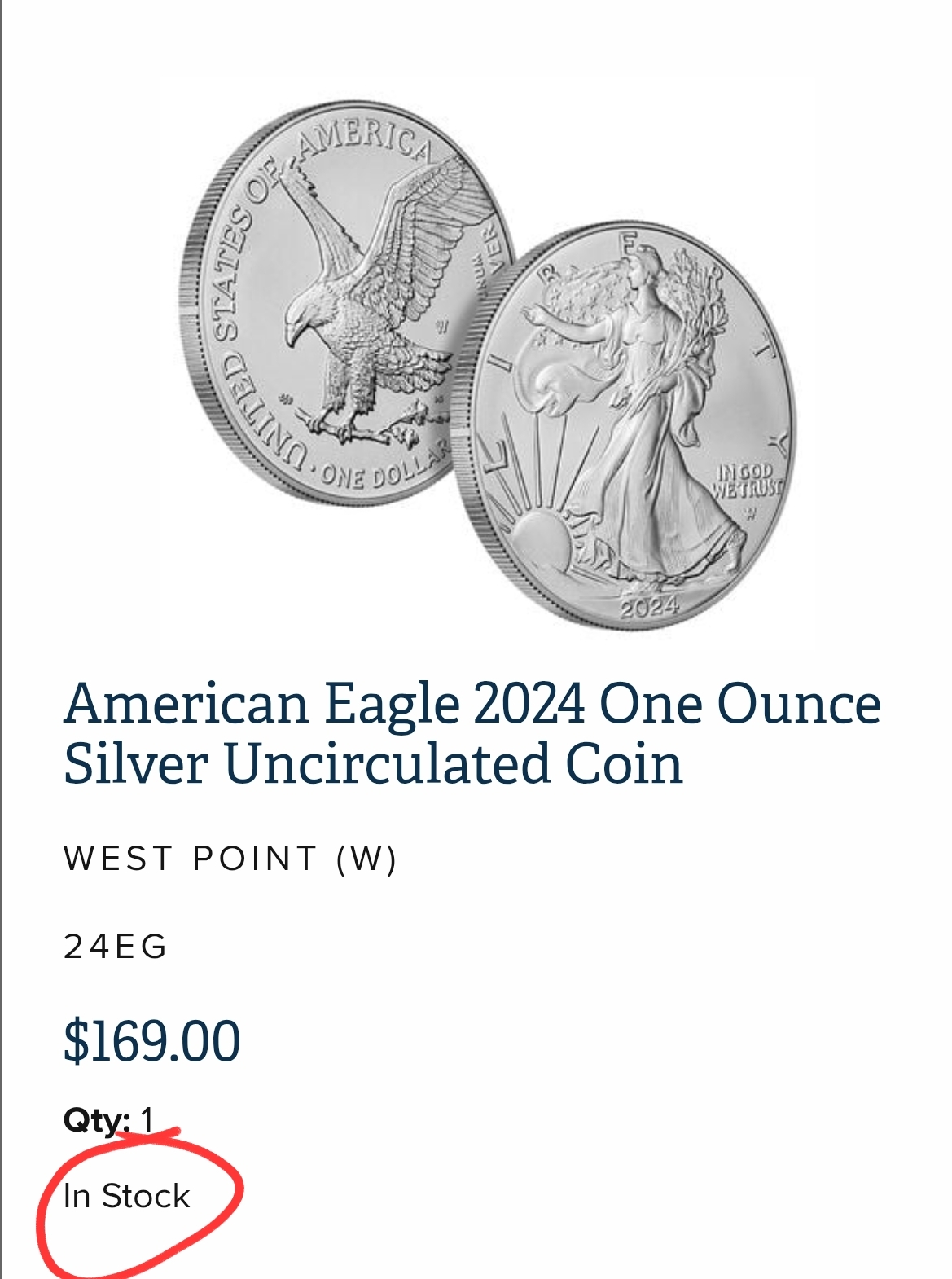>>526240014On April 23rd 2025, the price of silver was $33.86/oz. https://archive.ph/ab67vThis is an archived snapshot from the mint website, same date, selling Silver Eagles for $91.