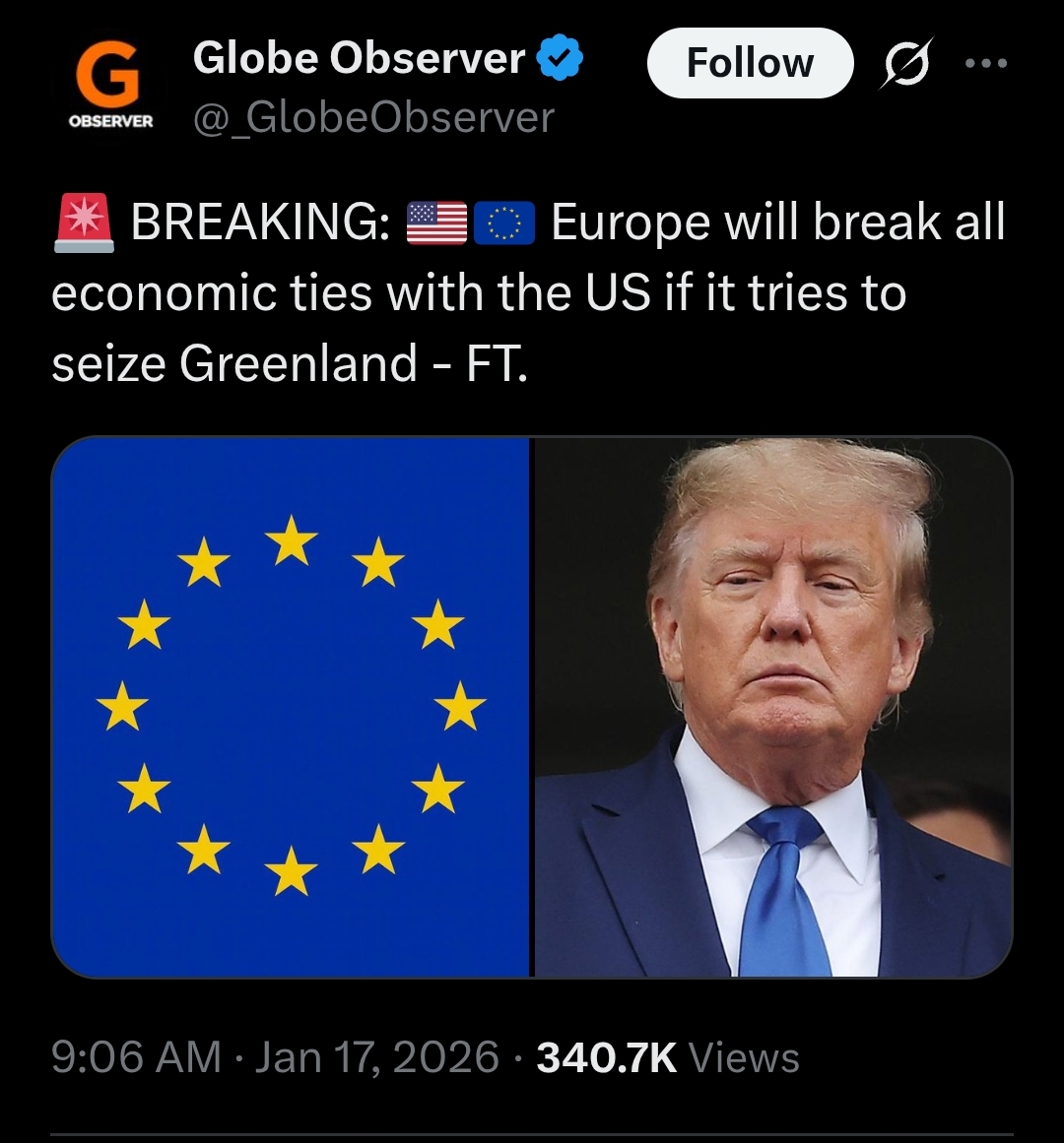 >>526237126>They haven't had one grand reason to rip the bandaid off and do it yet, Greenland would be the last straw.Trump has been talking about annexing Greenland for years and has been actively looking to cut off trade with yuros. They've done nothing because they don't want to do nothing. If they had the fortitude to take a loss and cut off trade they would have already done so. Instead, they're going to be forced into it by Trump and them pretending they are strong and that this is all their decision instead of being forced into it highlights weakness. There's a reason they're so insistent on theatrics opposing Trump ad it's because they're otherwise too spineless to seriously oppose him until given no choice.