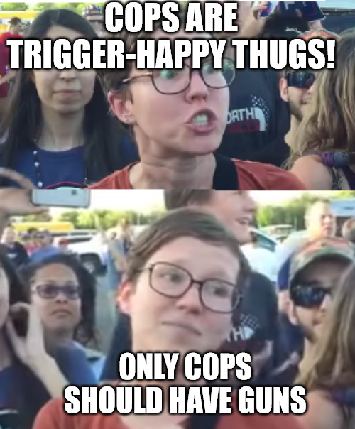 >”haha a liberal WOULD NEVER start walking the streets with weapons brandished and using them against what they see is a masked gestapo WHAT DO YOU MEAN THERE ARE WHITE GROWN ASS MEN CARRYING THE GUNS?!?!?”