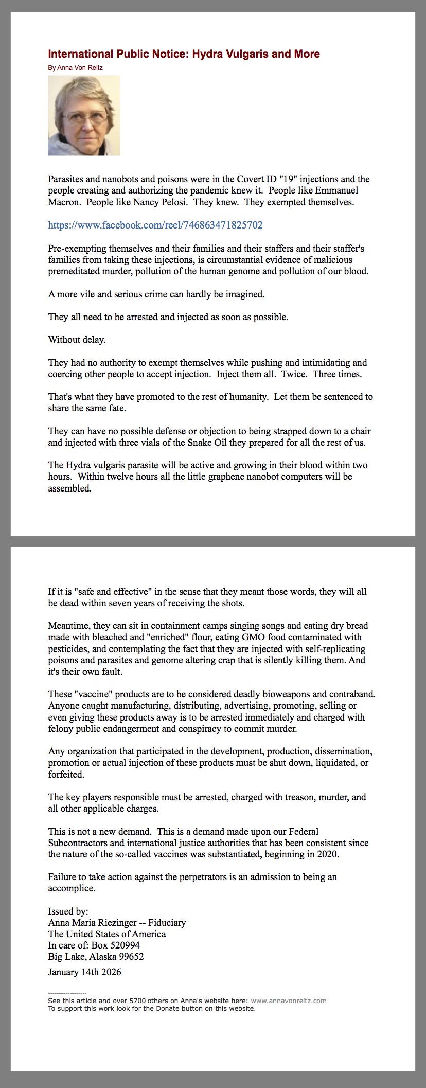 US hospitals are still paid almost $6k for every single useless eater injected with modRNA/LNP bioweapon. https://x.com/MaryBowdenMD/status/2012530950354117061I wonder how much they get in Bolanda for this ongoing democide. Similarily, i guess, judging from exponentially growing number of "vaccines" in the mandatory schedule and the regime doubling down on "anti-vaxxers" xD