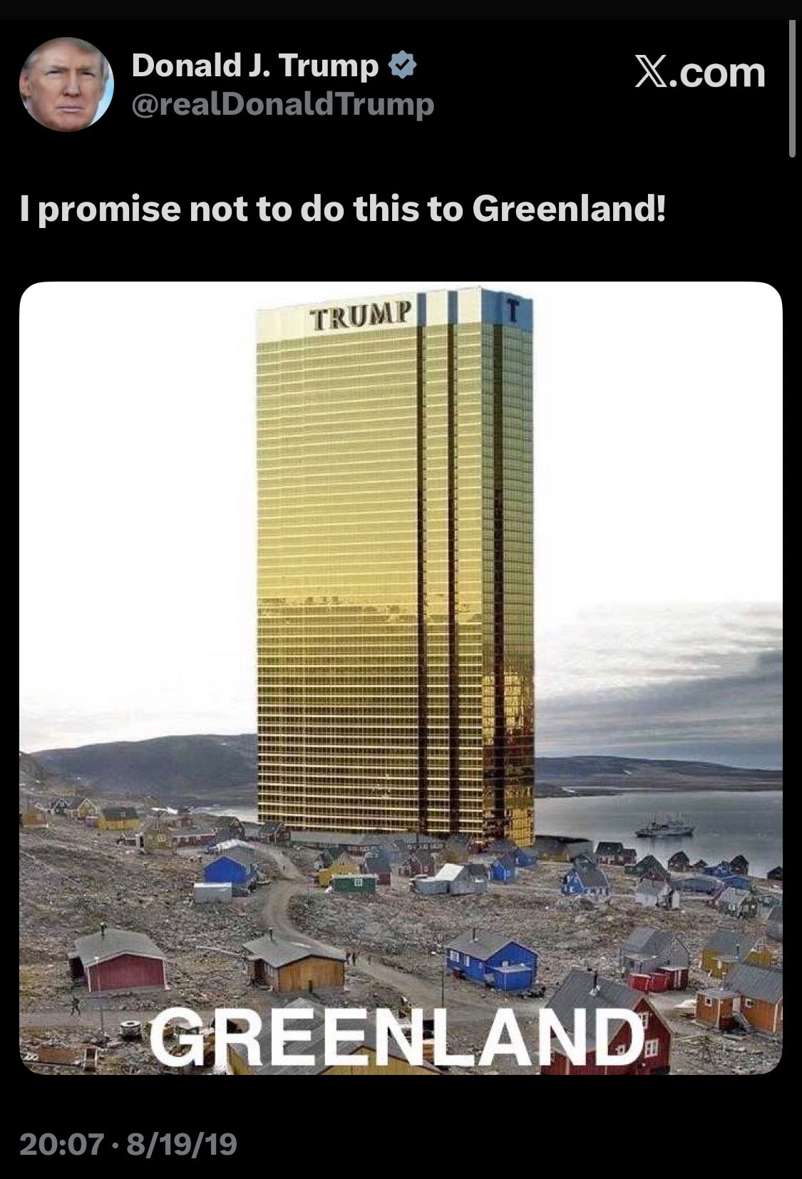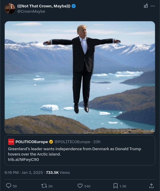 This Greenland thing will 100% happen. Just like when the regulars said that Obama is 100% getting arrested.