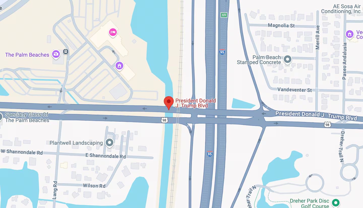 >>526246995Oh neat!>State lawmakers approved giving an honorary new name to part of Southern Boulevard, a road linking Palm Beach International Airport to Mar-a-Lago, Trump's private club and residence. The road is frequently used by the president’s motorcade when traveling between the airport and the property.