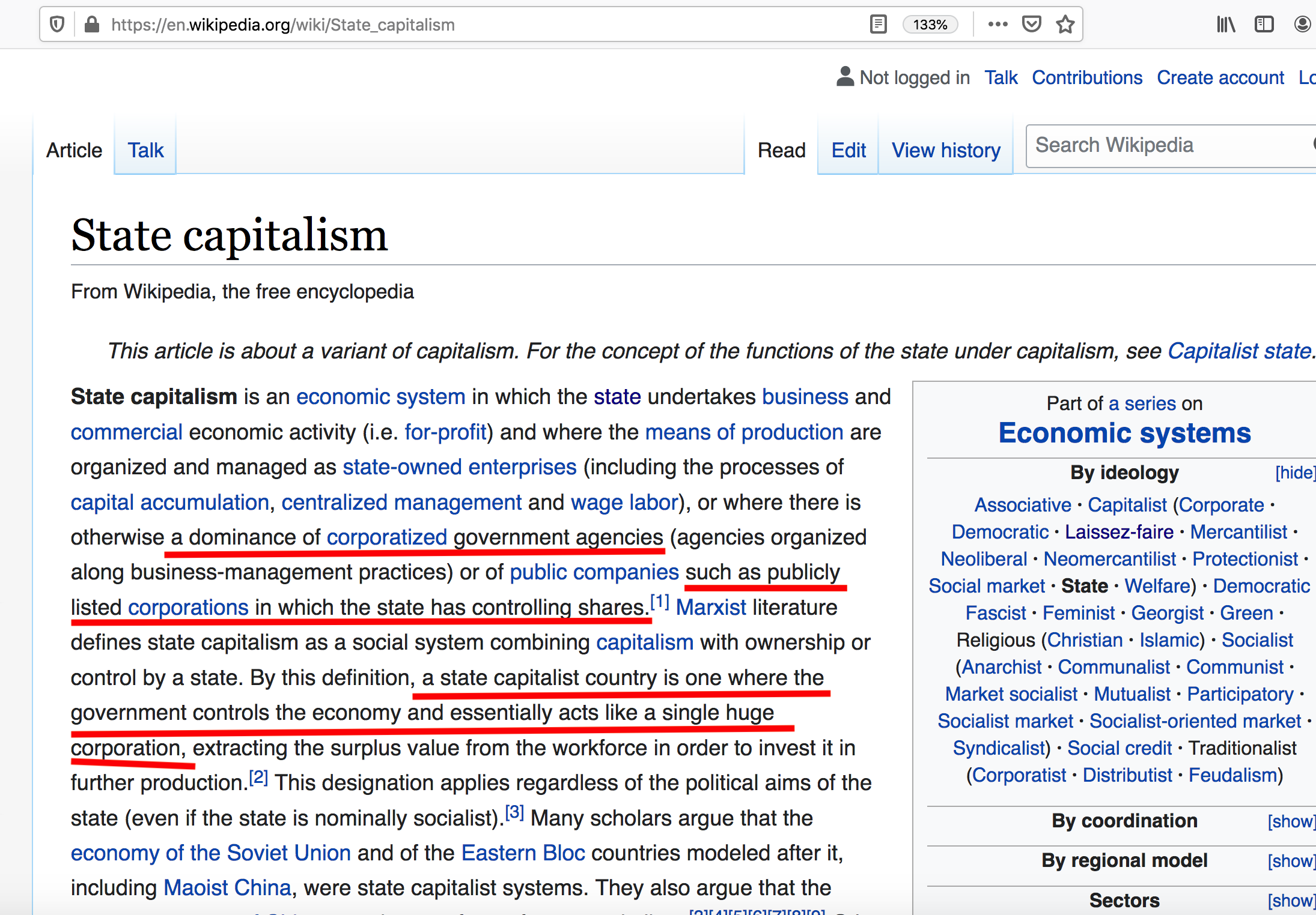 >>526251589Unfortunately, you willfully misrepresent the views of communists so badly that there's no way to even have discussions about our actual views with you people.>>526250697Well, I mean until Trump that was true about the govt having barriers to nationalization. Unfortunately, if you want to let Intel fail, and US Steel go to Japan, you won't find any complaints from us communists! For you will be putting the nail final capitalism nail in the US coffin! So I mean have fun!And I repeat, "the word "capitalism" means the private ownership of the means of production. The United States is a militantly capitalist country, where the means of production are privately owned, and we war against countries which uphold communism."