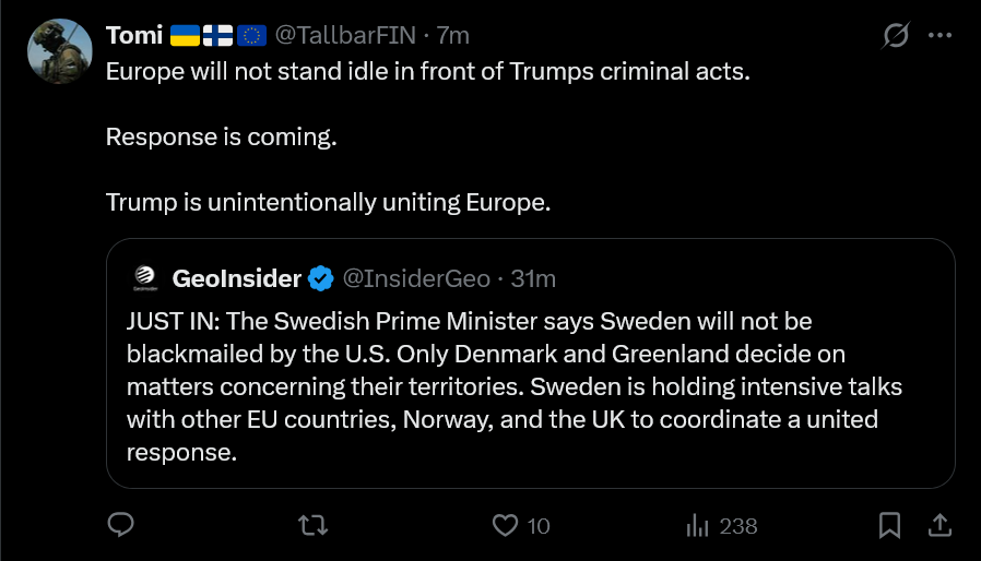 >In a post on Truth Social, Trump said additional 10% import tariffs would take effect on February 1 on goods from Denmark, Norway, Sweden, France, Germany, the Netherlands, Finland and Britain - all already subject to tariffs imposed by Trump.LET'S FUCKING GOOOOOOOOOOOOOOOOOOOOOOOOOOOOOOOOOOOOOOOOOOOOOOOOOOOOOOOOOOOOOOOOOOhttps://www.reuters.com/world/europe/trump-vows-tariffs-eight-european-nations-over-greenland-2026-01-17/