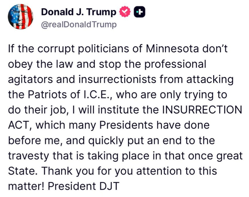 You fucking retards, you want Trump to declare insurrection on protestors, creating precedent that it can be used against (you) at any point. Everything you use against your political enemies now will be used against you later.