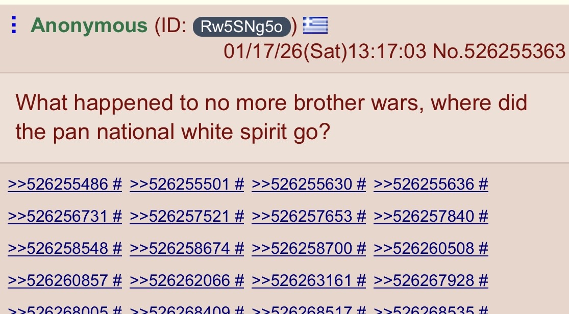 >>526255363>What happened to no more brother warsMore than that, where the fuck did this phrase come from? all i can find is a bunch of pro-ukraine accounts using thos quote complaining about russia.