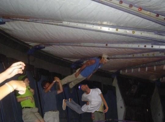 >>526269122Kid at my fair got yeeting out the top jumping into the tarp on the top causing one strap to break holding it down against the wall and the supports. Slipped right through the ceiling and wall.He lived but I don’t remember how hurt he was.