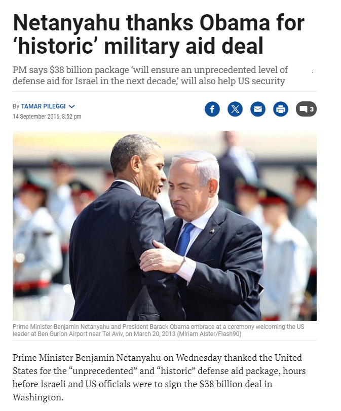 Who was POTUS in September of 2016 when the agreement was signed? DNC water carriers are not allowed to answer this honestly, nor acknowledge the significance. They instead focus on the vetoproof NDAA not being vetoed by a POTUS who did not make an agreement to give Israel 38 billion dollars.