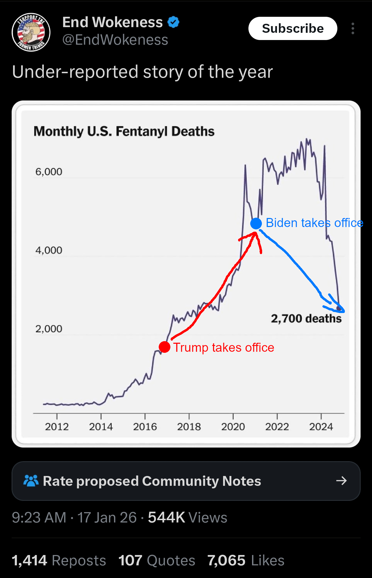 >>526285001>Fent deaths spike the first year Biden is president >This makes Biden look good