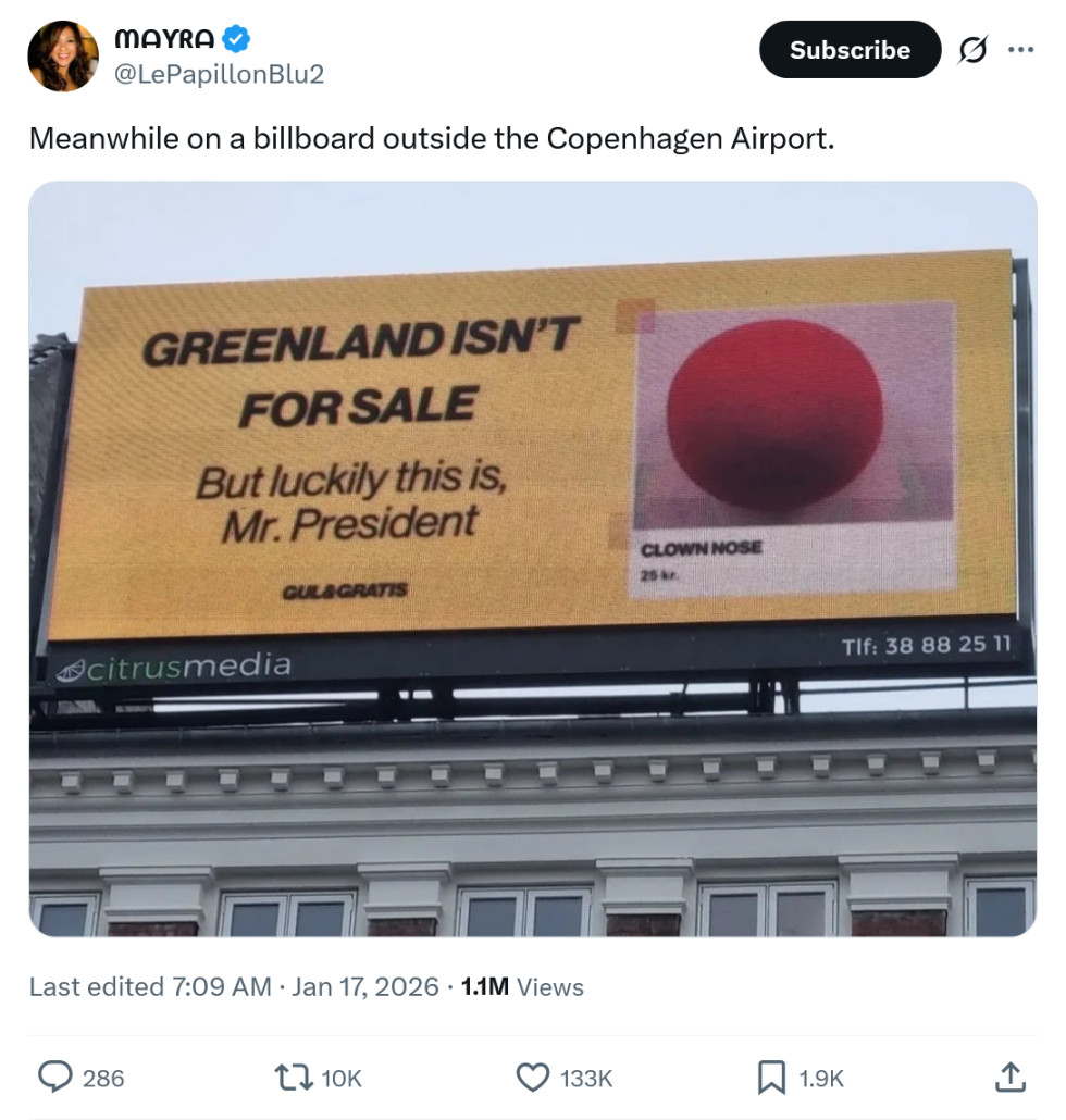 >>526293857>inb4 he buys Greenland and refuses to allow press at the ceremony unless they wear a clown nose