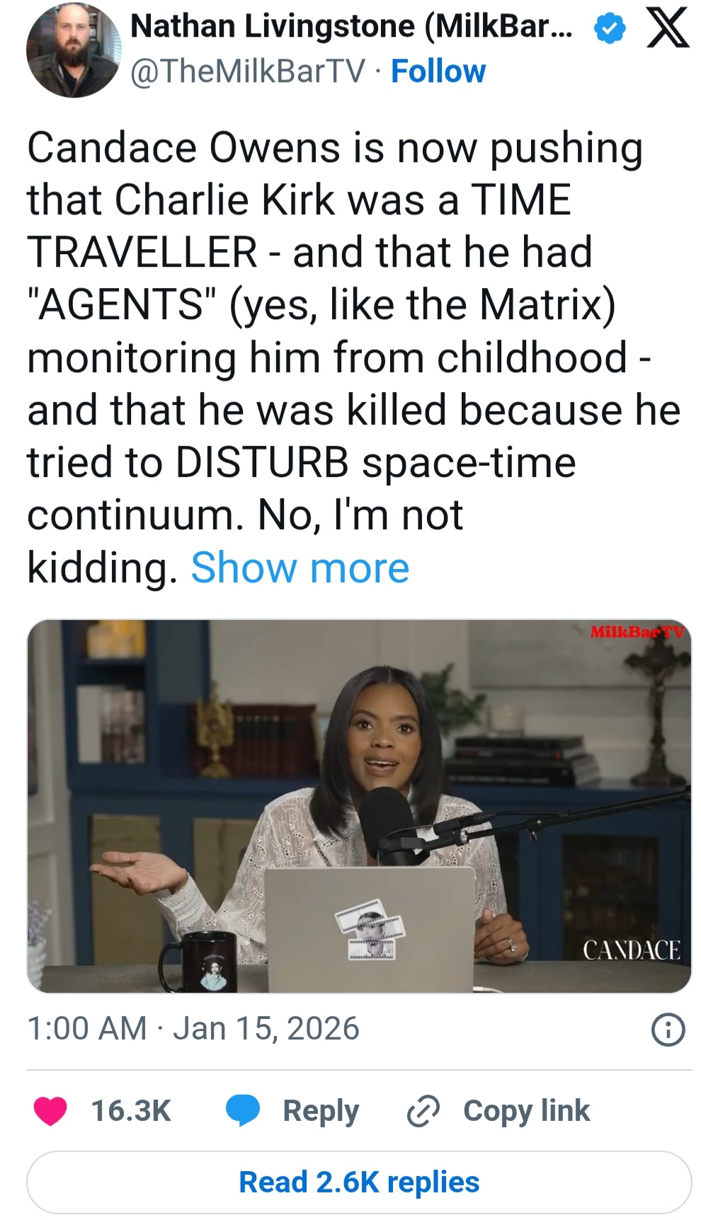 >>526303017Understand. You are a character assassinating, gaslighting narcissist that shits out post after post trying to look big brained but all you do is prove to everyone how brainrotted and reddit you are.I started this thread bringing up that Fuentes is a Sephardic surname and Candace Owens is friends with a scientologist. But instead of picking up on that the thread devolved into this garbage. We could be talking about Ali Alexander and how he runs the AF Post account on x but no. You are redditing the thread up instead.