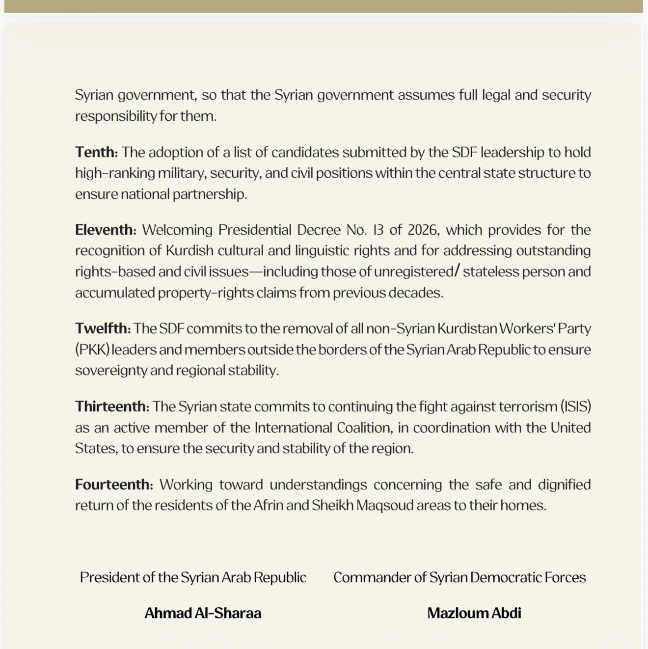 Abdi pretending the agreement was just them withdrawing from Raqqa and Deir ez-zor, let me guess it's yet another "SDF agrees to deal but actually they keep shooting" or the old "Sweida elders agree to deal but actually Hijiri rejects it". All while they're murdering tribes and the tribes declared general mobilization and the army isn't even there to help or prevent counter-massacres. Fuck this shit, guess it's going to hell again tomorrow.