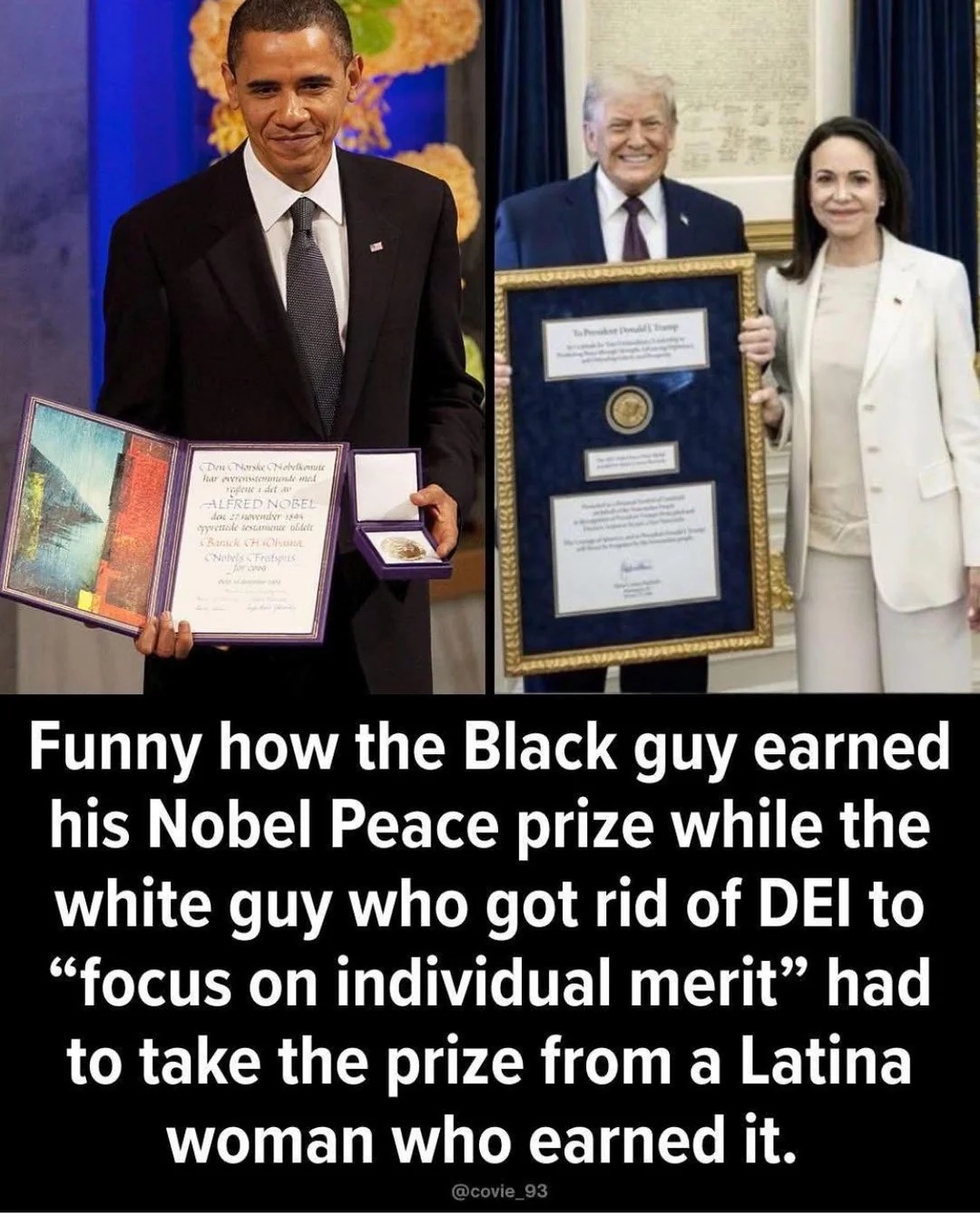 This dude got the Nobel peace prize in October 2009 without any achievements whatsoever. Just because he's black.Kinda like how he got the presidency.