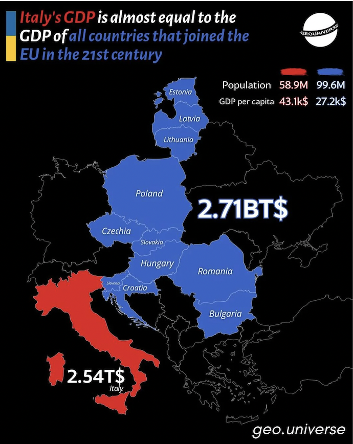 >>526306835>italy's debt is equal to the debt of all countries that joined the EU in the last century