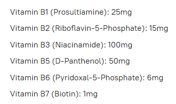 Current things i am taking 1g Aspirin30mg zinc glycinate (experimentally)1mg K1, 1mg K2mk4, 100mcg K2mk7400IU vitamin E60mg desiccated thyroid+ this b complex