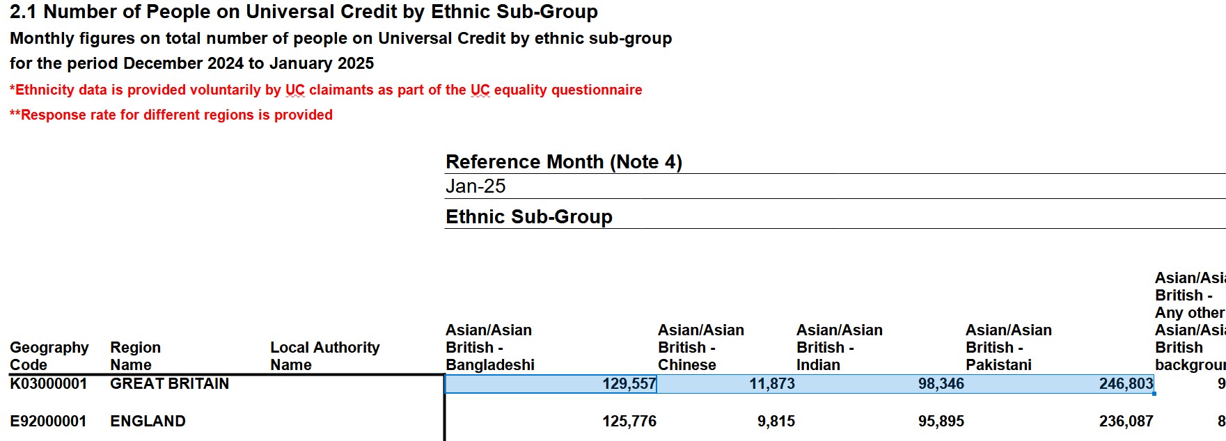>>526324123>provide most public services directlyhttps://www.gov.uk/government/statistics/universal-credit-statistics-29-april-2013-to-9-january-2025/universal-credit-statistics-29-april-2013-to-9-january-2025Asians 8.6% of the population, 10.4% of Universal Credit claimants.Looking at the data tables, we can see that Pakistanis and Bangladeshis, despite being less numerous than Indians, have a higher number of UC claimants. >we have healthier communitieshttps://www.ons.gov.uk/peoplepopulationandcommunity/healthandsocialcare/disability/articles/protectedcharacteristicsbydisabilitystatusenglandandwalescensus2021/2023-05-17In England, 17.7% of the whole population were disabled. Among Asians, 20.7% were disabled.