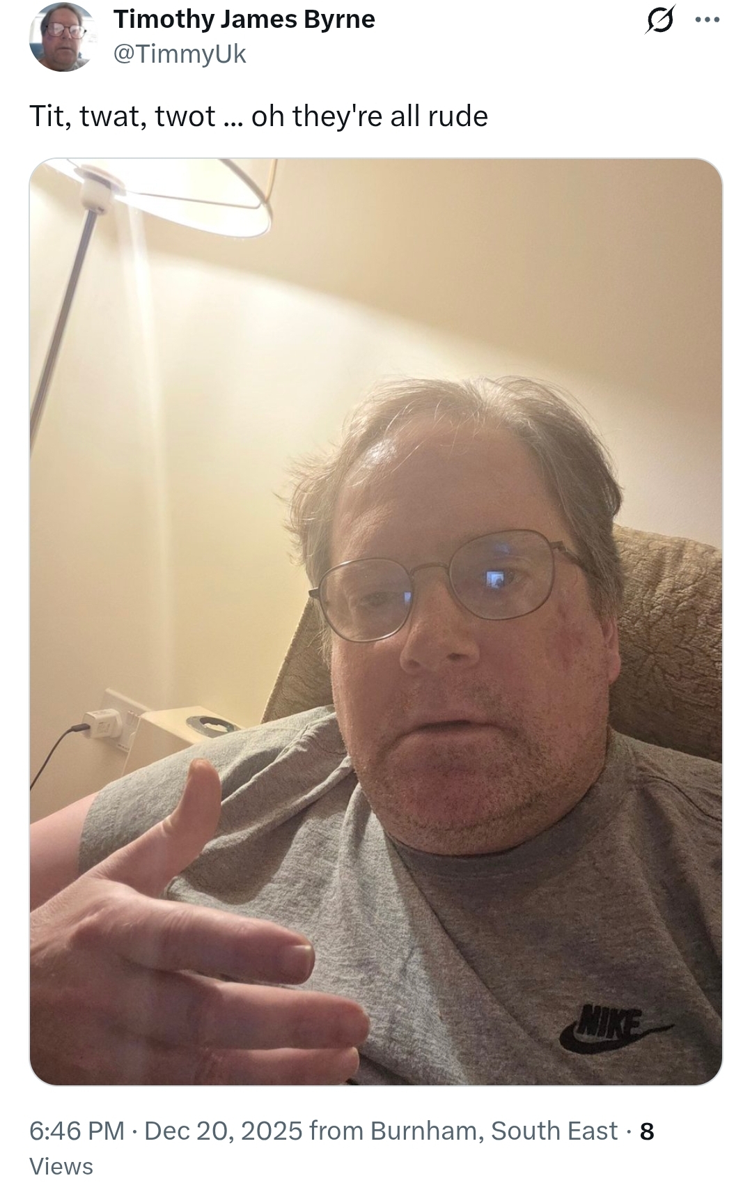 >thought he was proving a point posting a teenager putting popcorn in a bucket for £100 a day Gone anon to talk to himself and self soothe