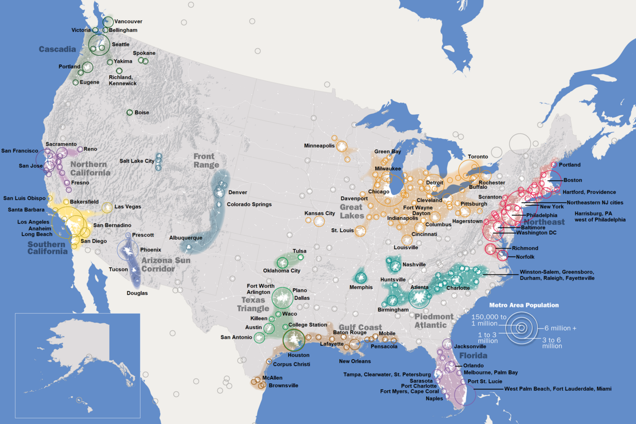 New York City, Chicago, Houston, Los Angeles Gotta divide the country like that.