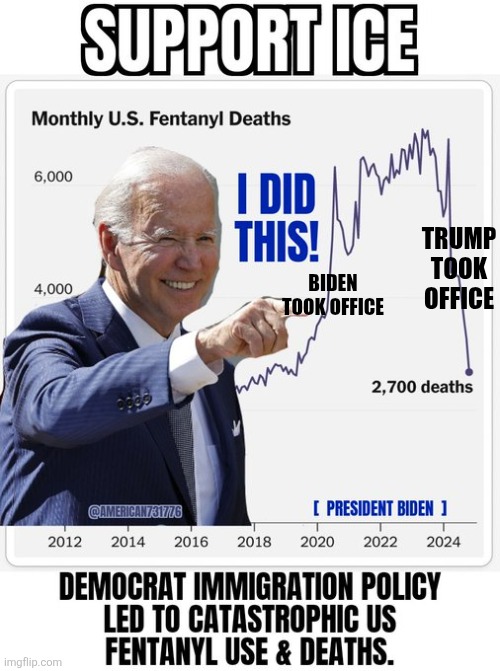 Why is Biden so good at supporting ICE and dropping fent deaths?Why do rightwingers care so much for fent deaths, while trying to say gun deaths are pefectly acceptable?Is it because as demons gun deaths are ritual sacrifices of children, while fent deaths are random losses of the worker class?Whens the last time you saw something masonic with a fent death vs a school shooting?
