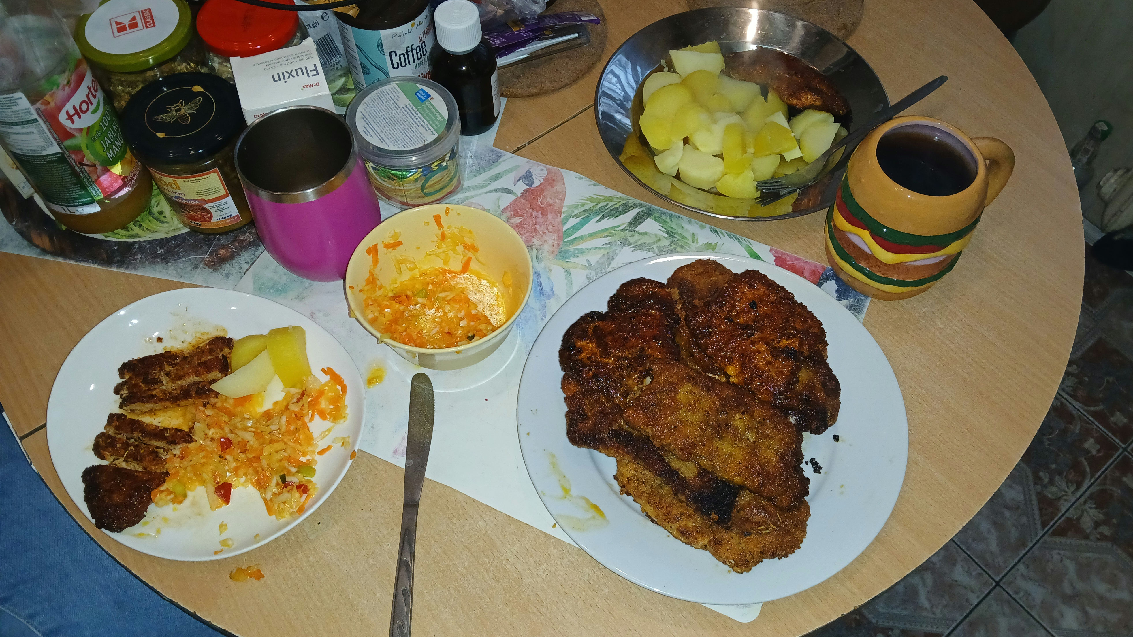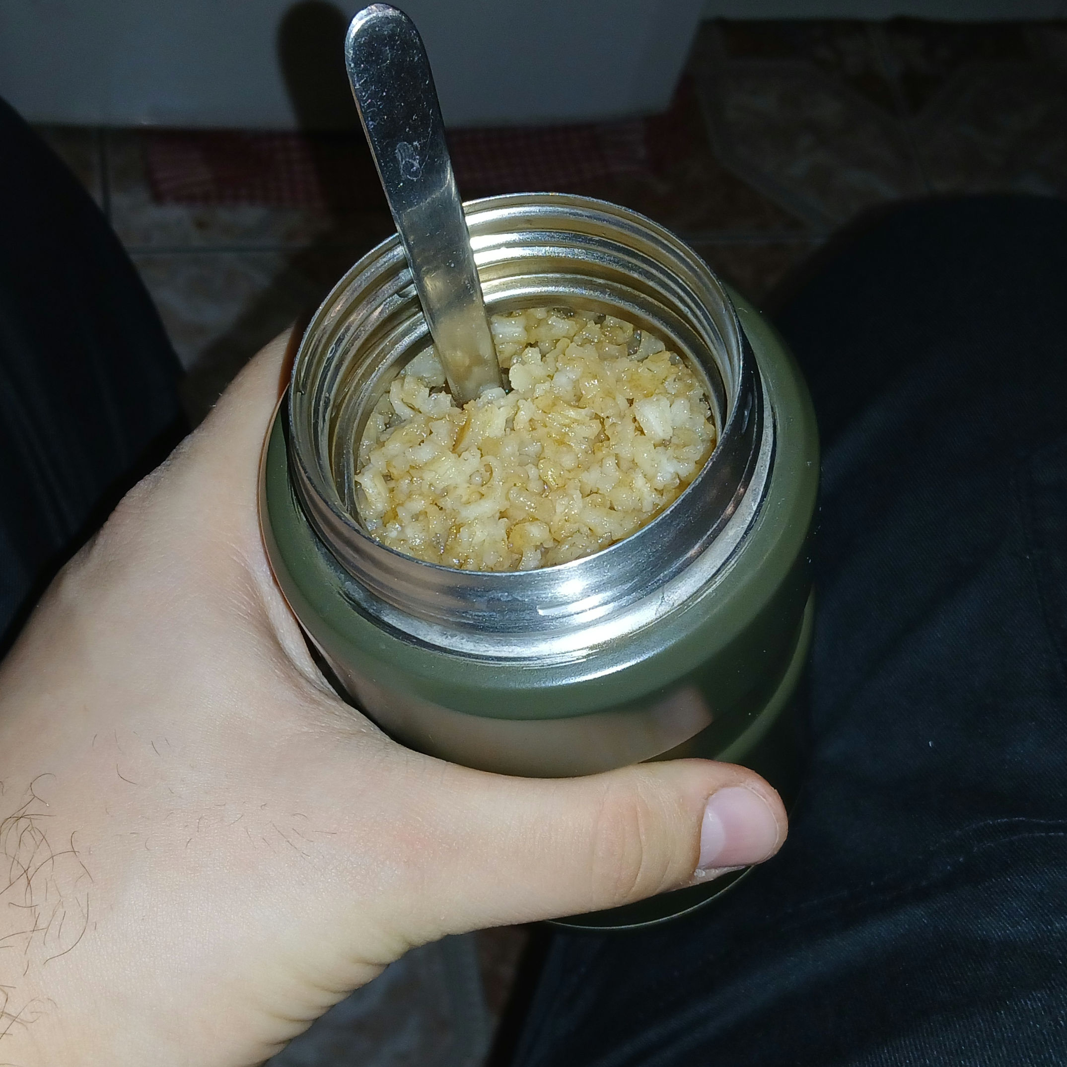 >>526314537>for dinnerMy understanding was that he carries the thermos of slop around with him all throughout the day. Like a cow grazing every waking moment.