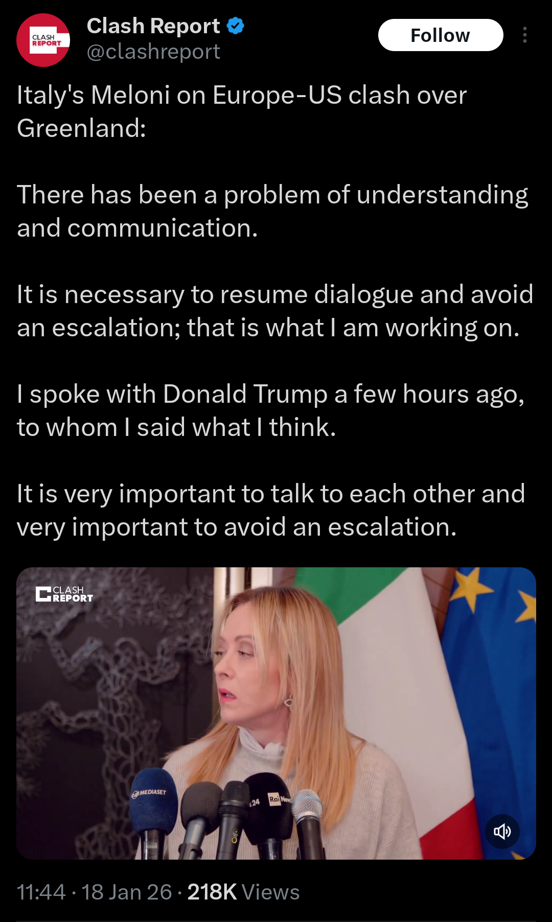 Meloni is trying to avoid escalation, she thinks there's been a misunderstanding.