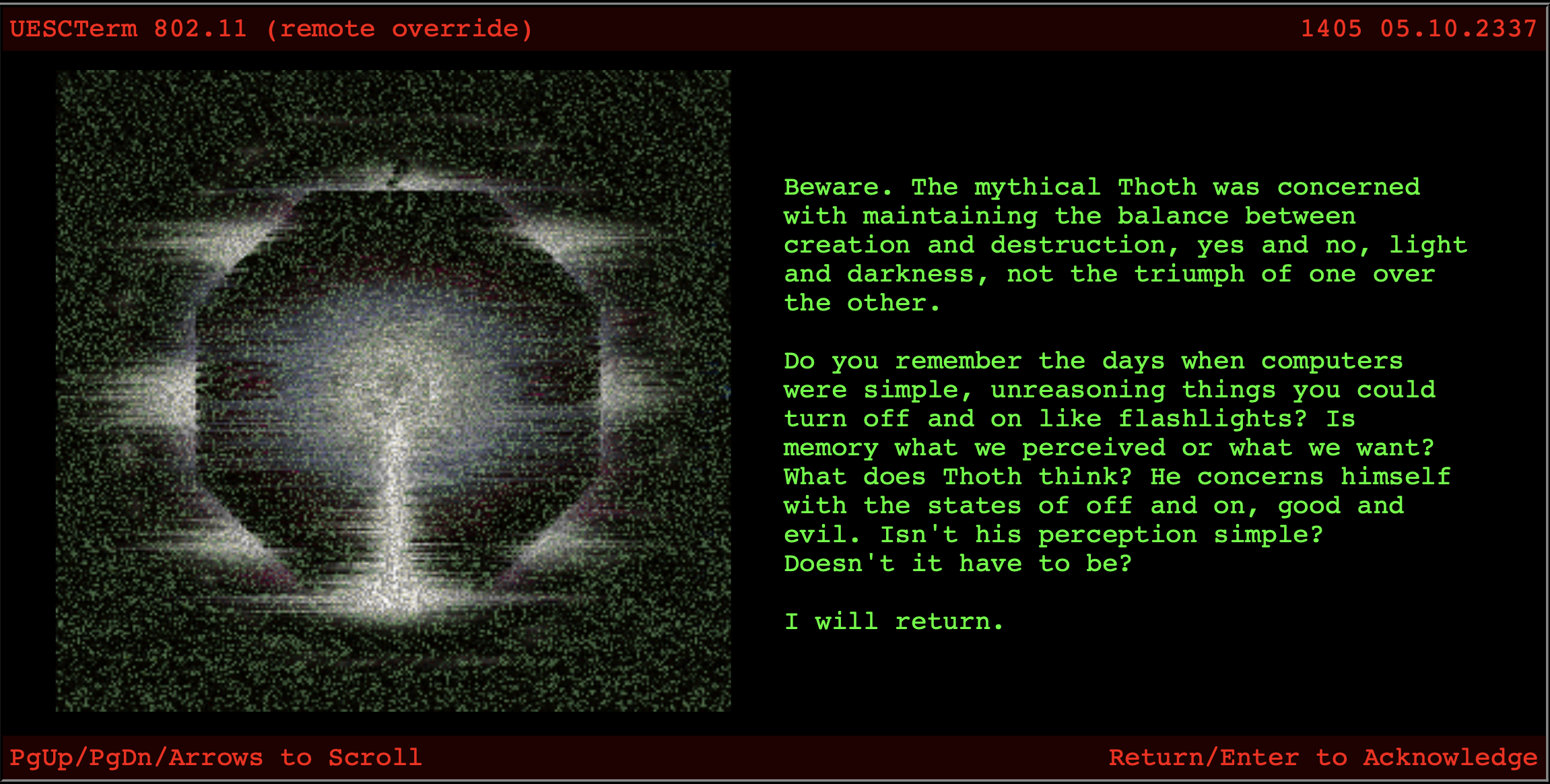 >>526320068To summarize, then, the supreme universe is a triadic cyclical process that is continually going on, evolving and exploding into myriads of pathlines of potential universes. The concept of the triadic cyclical process is not the same as the triadic nature of Hinduism, which posits three primary forces, Creation (Brahma), Maintenance/Continuing (Vishnu) and Destruction (Shiva) but a triadic form that consists of the Father/Creative Impulse (First Intelligence), the Mother-Creatrix-Generator (Second Intelligence) and the Child (Third Intelligence). Thus the universe of universes is an extremely complex union set of essentially all possibilities that form and dissolve subject to certain laws that are for the most part unknown to virtually everyone except for a few mathematicians and realized beings who can conceptualize a universe that is there and at the same time, never was and never will be.