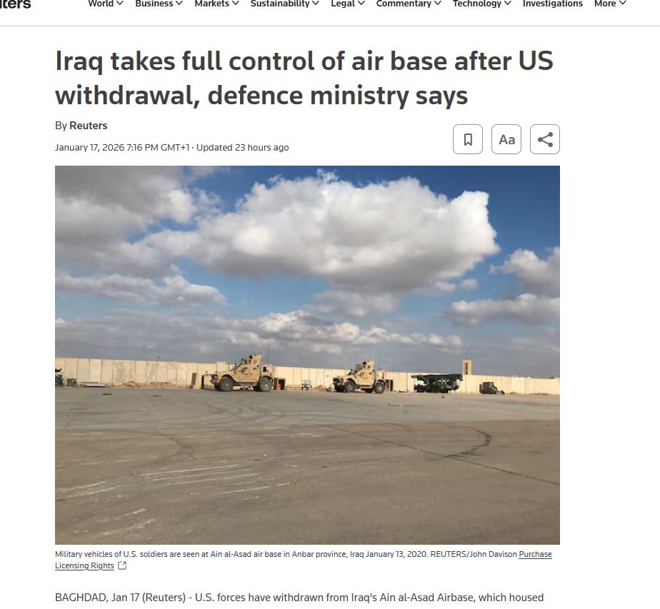https://www.reuters.com/world/middle-east/iraq-takes-full-control-air-base-after-us-withdrawal-defence-ministry-says-2026-01-17/