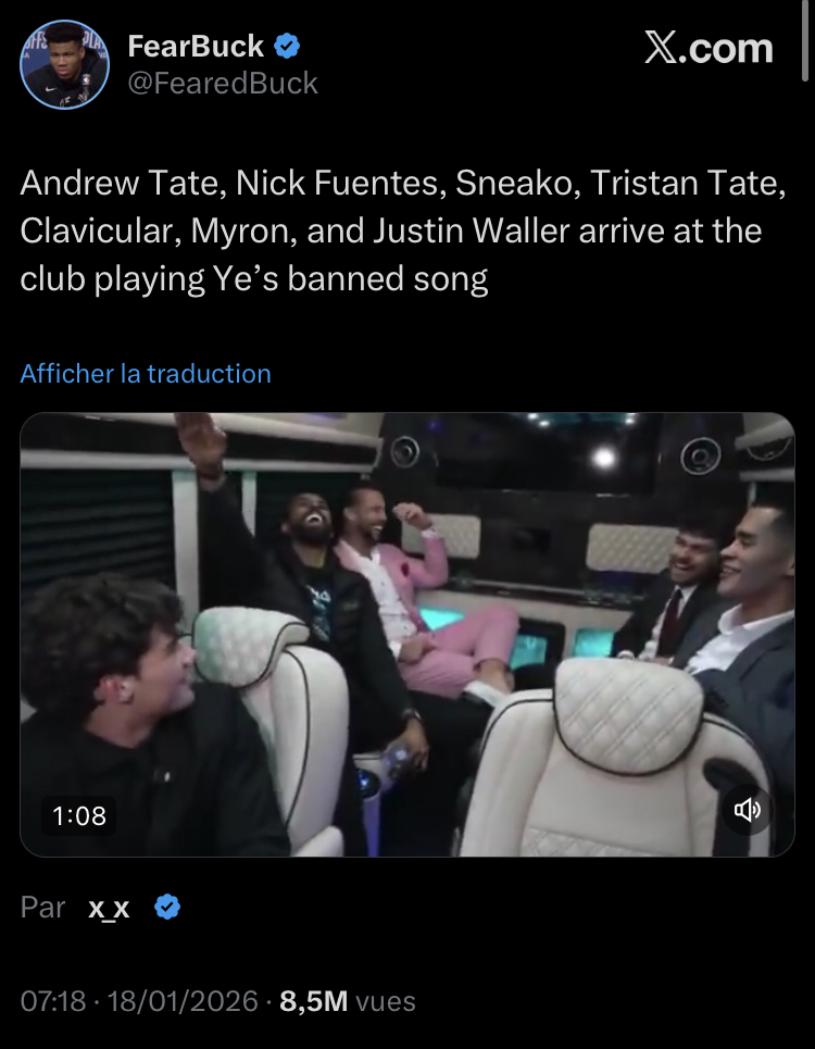 https://x.com/FearedBuck/status/2012771622382404085?s=20Do they really think they’re edgy with this? Not a single one of them is white, they would have all ended up in the oven during WW2.